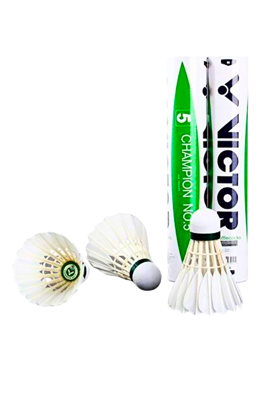 The Victor Champion No.5 Feather Shuttlecock is a high-quality feather shuttle designed for consistent flight performance, durability, and reliable gameplay. Manufactured by Victor Sports, this shuttlecock is ideal for badminton training sessions, club matches, and recreational play. It offers a perfect balance of durability and stable flight, making it a popular choice among badminton enthusiasts and intermediate players.