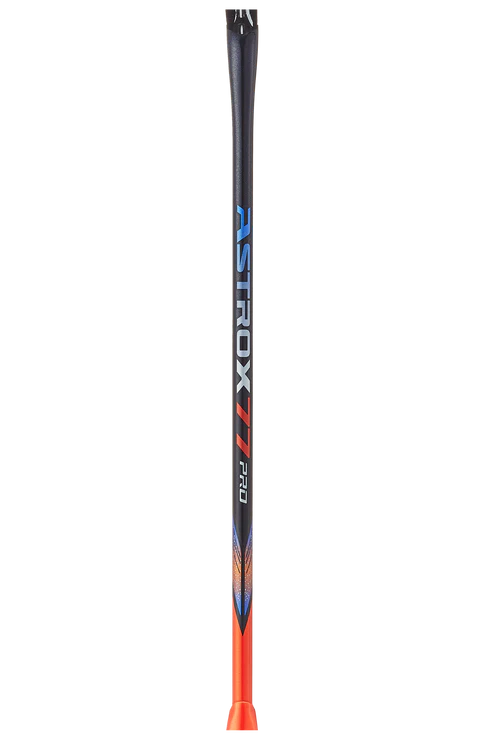 Constructed with High Modulus Graphite, Flex Fuse, and Tungsten in the frame, the Astrox 77 Pro delivers enhanced stability and a solid hitting feel. The shaft uses Namdâ„¢ graphite and Ultra PE Fiber, which improves energy storage and snap-back speed, allowing the racquet to release explosive power on impact.