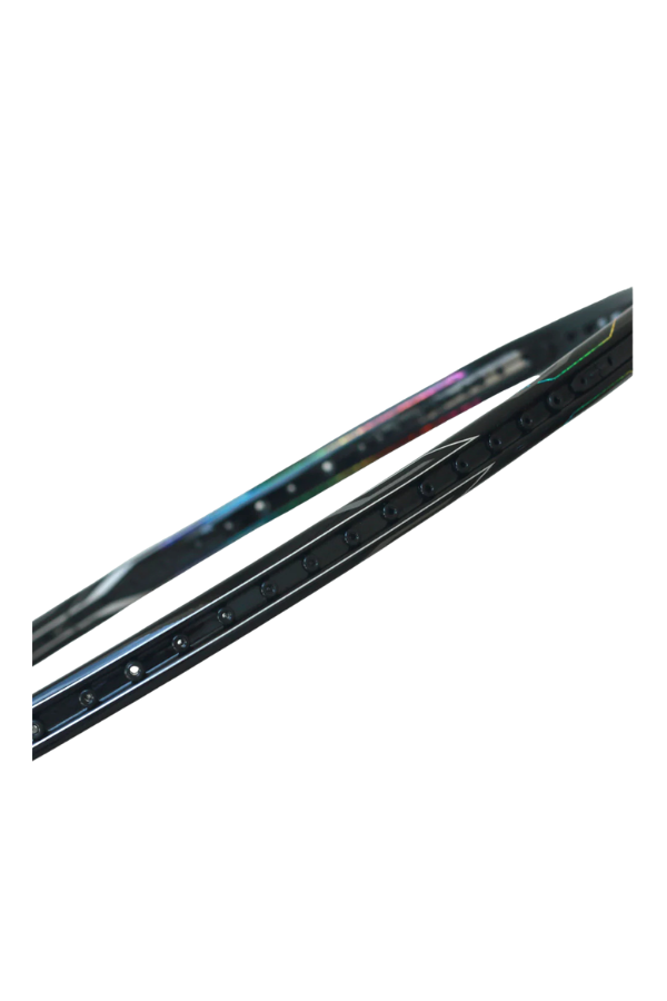 The aerodynamic frame design reduces air resistance, enabling faster swing speeds and smoother follow-through. This helps players react quickly in both offensive and defensive situations, making the racket highly effective for modern fast-paced badminton. ()